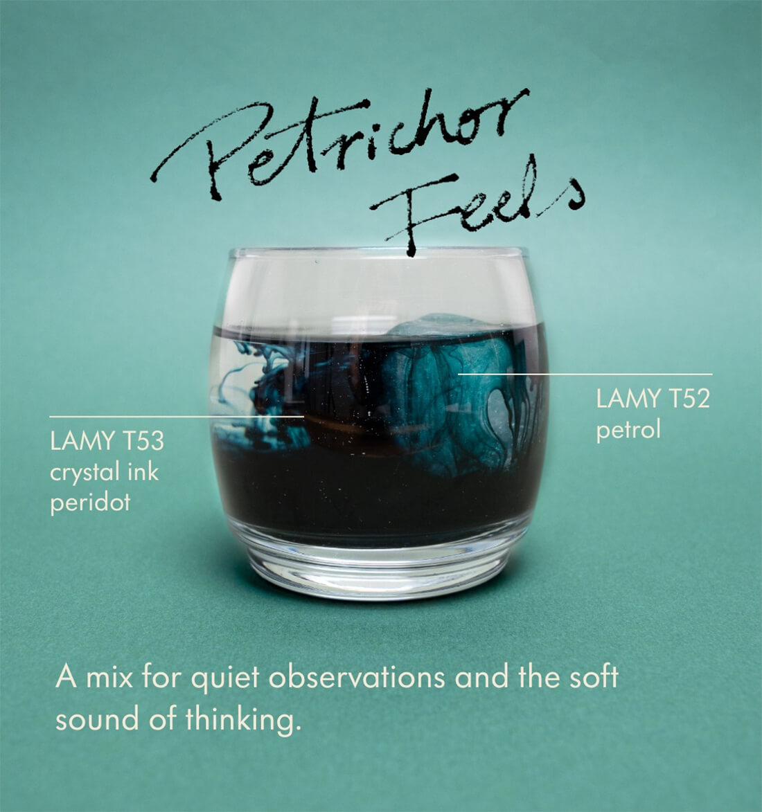 Це не просто нові кольори. Це — бленди, зібрані з уже знайомих відтінків LAMY T52 і преміальної серії LAMY Crystal T53. Їх міксували вручну — піпеткою, пензлем, краплею у воді. Потім давали назву. І кожен мікс ставав маленькою історією.
