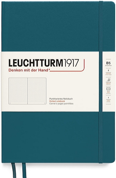 Блокнот має практичний формат B5, який займає проміжне положення між блокнотами Medium (A5) та Master (A4+). Німецький бренд Leuchtturm1917 відрізняється високою якістю матеріалів і виробництва, а також увагою до дрібних деталей.