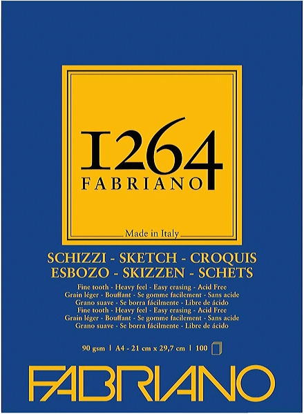 Скетчбук-склейка Fabriano з мілкозернистим папером кольору слонової кістки. 100 листів щільністю 90 г/м2. Формат: А4, 21 х 29,7 см. Виробник: Італія.