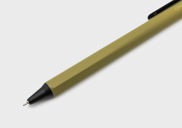 Легка та міцна ролерна ручка OHTO GS04-G5 дарує приємний досвід м'якого письма. Вона має комбінований алюмінієвий корпус, який плавно переходить від круглого верха до шестикутного наконечника у зоні захоплення. Має матове приємне на дотик покриття. Є металева кліпса. Ручка вмикається/вимикається натисканням на класичну кнопку у верхній частині корпусу.