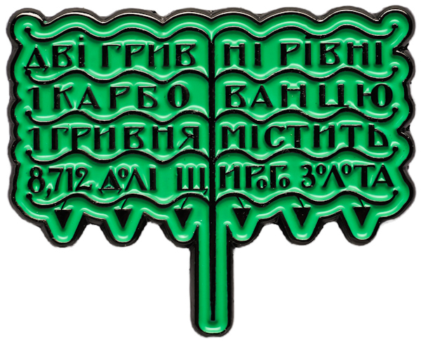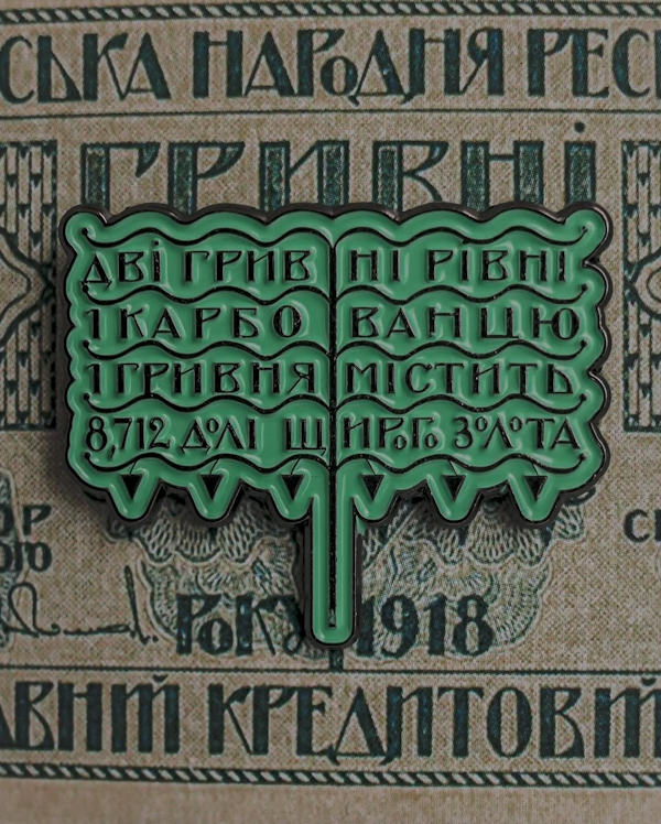 Патріотичний значок від українського бренду Inspired by UA нагадує про символи історичної та культурної спадчини на шляху до нашої незалежності, як от спробу зародити самостійну Україну через створення власної валюти. Пін відтворює графічний елемент на аверсі двохгривневої купюри УНР 1918 року, автором якої був український графік Василь Кричевський.