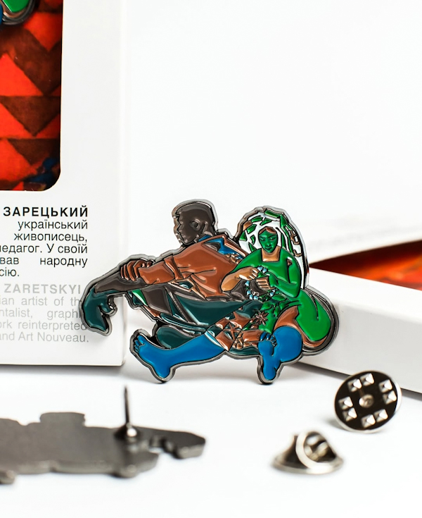Серія патріотичних значків від українського бренду Inspired by UA створена за мотивами робіт українського митця шістдесятника, живописця, графіка, монументаліста та педагога Віктора Зарецького. Особливістю його робіт є поєднання традиційних мотивів із сучасними тенденціями, використання яскравих кольорів, декоративність та глибокий символізм. Пін стане зворушливою можливістю подарувати рідним чи близьким вам людям шматочок культурної спадщини України.