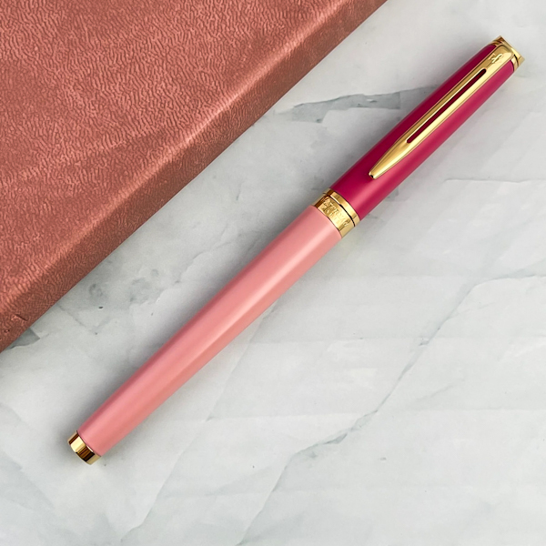 Витончений лаконічний корпус виготовлений з латуні та вкритий кількома шарами стійкого матового лаку двох відтінків рожевого кольору. Грип-секція виготовлена з чорного глянцевого пластику. Більшого блиску образу надають ексклюзивні деталі з обробкою із високопробного золота 23К. Верхівка ковпачка скошена у дусі Waterman Hemisphere та доповнена фірмовою кліпсою.