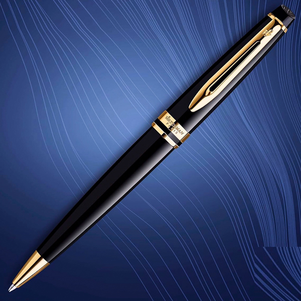 Потовщений лаконічний корпус виготовлений з латуні та вкритий кількома шарами стійкого глянцевого лаку чорного кольору. Більшого блиску образу надають ексклюзивні деталі з обробкою із високопробного золота 23К. Верхівка ручки скошена у дусі Waterman Expert та доповнена фірмовою кліпсою.