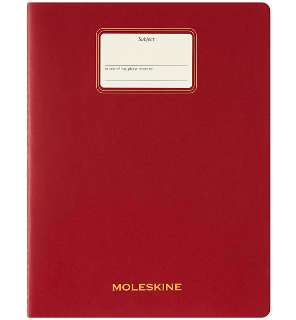 Зошит від Moleskine для повсякденних задач Cahier Student. В наборі наліпка для персоналізації та закладки на клейкій основі. Формат — 21,6 х 27,9 см, 120 сторінок в лінію, 30 відривних аркушів з перфорацією, картонна обкладинка.