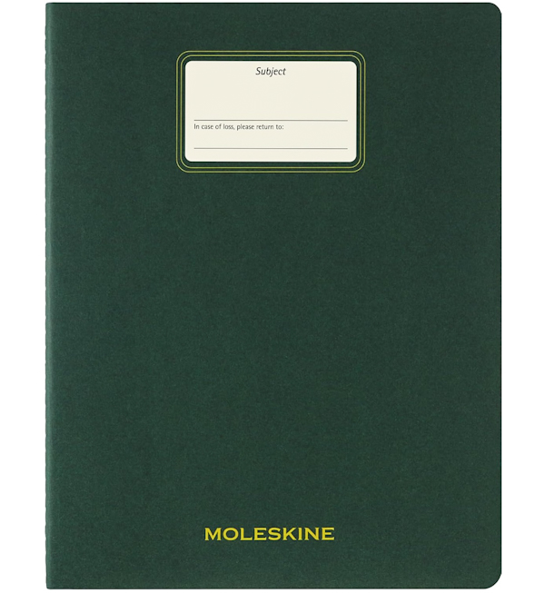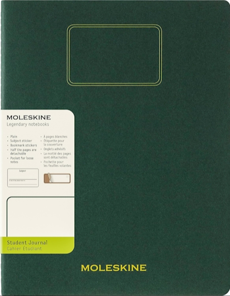 Зошит від Moleskine для повсякденних задач Cahier Student. В наборі наліпка для персоналізації та закладки на клейкій основі. Формат — 21,6 х 27,9 см, 120 нелінованих сторінок, 30 відривних аркушів з перфорацією, картонна обкладинка.