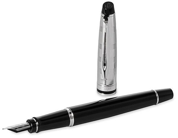 Потовщений лаконічний корпус виготовлений з латуні та вкритий кількома шарами стійкого глянцевого лаку чорного кольору. Грип-секція виконана з чорного глянцевого пластику. Більшого блиску образу надають гравіювання верхньої частини письмового інструмента та ексклюзивні деталі з обробкою паладієм. Верхівка ковпачка скошена у дусі Waterman Expert та доповнена фірмовою кліпсою.