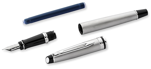 Ручка оснащена майстерно виготовленим сталевим пером з вигравіюваною емблемою Waterman. Товщина пера F (тонке). У комплекті один картридж з чорними чорнилами. На папір вони лягають безперервно та швидко сохнуть. Для приємного враження не тільки від дизайну, а й від якісного письма, заправляти ці ручки рекомендується картриджами та чорнилами Waterman.