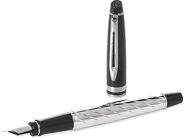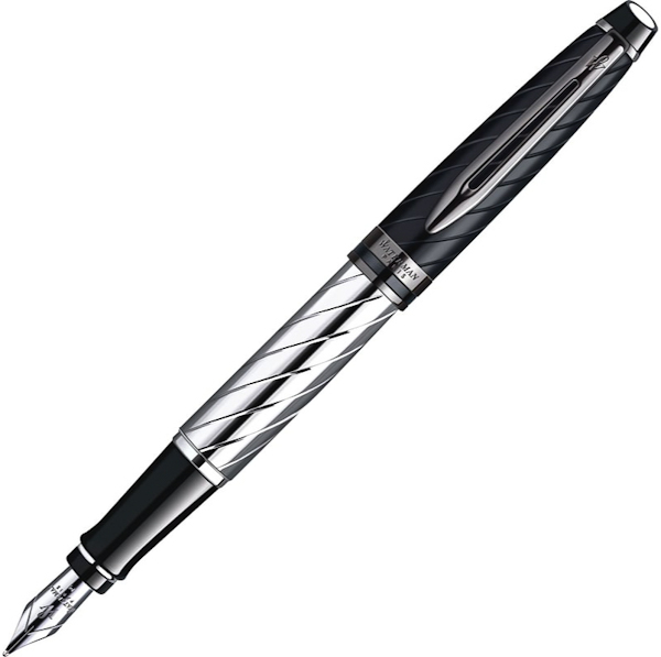 Потовщений лаконічний корпус виготовлений з латуні. Всі сріблясті деталі з паладієвим напиленням. Грип-секція виконана з чорного глянцевого пластику. Більшого шарму образу надають гравіювання корпуса у вигляді діагональних ліній та контрасна верхня частина письмового інструмента, яка вкрита кількома шарами стійкого лаку чорного кольору. Верхівка ковпачка скошена у дусі Waterman Expert та доповнена фірмовою кліпсою.