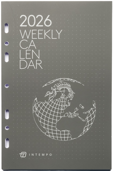 Внутрішній блок «Щотижневик на 2026 рік» підходить для органайзерів InTempo та інших органайзерів формату A5. Являє собою горизонтальний щотижневик «Тиждень на розвороті»: три дні — з лівого боку розвороту, чотири — праворуч, дати вказані посередині.