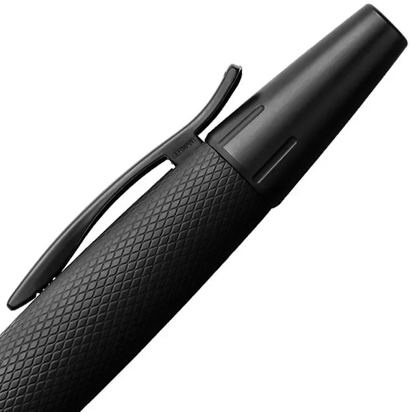 Лаконічна та елегантна, ручка Faber-Castell E-motion Pure Black створена для тих, хто цінує стиль, надійність і досконалість у кожній деталі. Її корпус виконаний із міцного анодованого алюмінію глибокого матового чорного кольору. Стриманий візерунок гравіювання зроблений у техніці гільйош. Все це разом надає письмовому інструменту солідного вигляду та приємного тактильного відчуття.