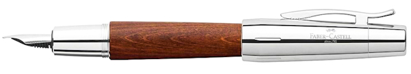 Елегантна чорнильна ручка E-motion створена привертати увагу. Корпус виготовлено з деревини груші та хромованих металевих деталей. Є кліпса. Ковпачок з різьбою. Сталеве перо. Товщина пера: M (середнє), 0,7 мм. Розміри ручки: 13,6 х 1,3 см. Виробництво: Faber-Castell (Німеччина).