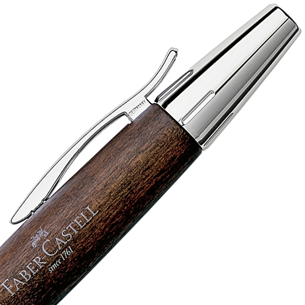 Лаконічна та елегантна, ручка Faber-Castell E-motion Pearwood створена для тих, хто цінує стиль, надійність і досконалість у кожній деталі. Її корпус виконаний із деревини груші, тонованої у темно-коричневий колір. Акцентним викликом теплій деревині виступають металеві деталі з глянцевим хромуванням. Все це разом надає письмовому інструменту солідного вигляду та приємного тактильного відчуття.