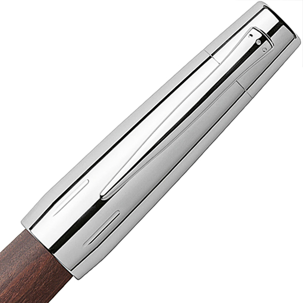 Лаконічна та елегантна, ручка Faber-Castell E-motion Pearwood створена для тих, хто цінує стиль, надійність і досконалість у кожній деталі. Її корпус виконаний із деревини груші, тонованої у темно-коричневий колір. Акцентним викликом теплій деревині виступають металеві деталі з глянцевим хромуванням. Все це разом надає письмовому інструменту солідного вигляду та приємного тактильного відчуття.