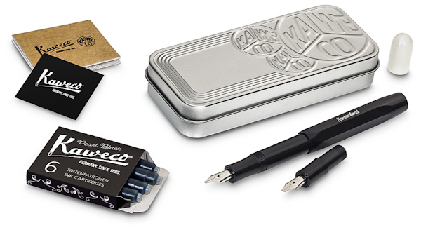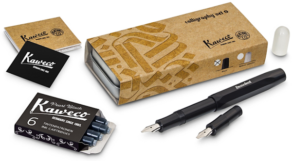 Подарунковий набір для шанувальників каліграфії та справжніх поціновувачів лаконічного дизайну та чудової якості Kaweco. Це справжній конструктор 2-в-1, адже комплектація набору дозволяє за допомогою зміни різних насадок на одному корпусі користуватися функціональними перевагами всієї лінійки каліграфічних ручок Kaweco з товщиною лінії 1,5 мм та 2,3 мм.