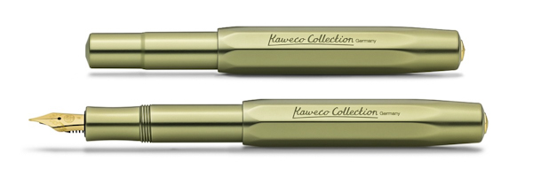 Спеціальне видання Kaweco Al Sport Collection Olivine у теплому оливковому кольорі поєднує ідеальний баланс між вічною елегантністю та сучасним стилем. Природний спокійний колір чорнильної ручки створює особливе середовище під час письма. Поєднання із золотими деталями не тільки підкреслює яскраву сторону стриманого оливково-зеленого кольору, а й робить письмовий інструмент стильним аксесуаром.