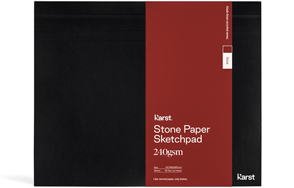 Скетчпад Karst призначений для художників-універсалів, що комбінують вологу та суху техніку малювання. Завдяки верхній палітурці зручно малювати під будь-яким кутом. Кожен лист має мікроперфорацію, що дозволяє акуратно і легко відривати листи. Скетчбук містить білі гладкі сторінки із кам'яного паперу Karst Stone Paper. Висока щільність паперу 240 г/м2 запобігає протіканню фарби через папір. Обкладинка виконана з розкішної чорної веганської шкіри, що забезпечує відмінний зовнішній вигляд та відчуття.