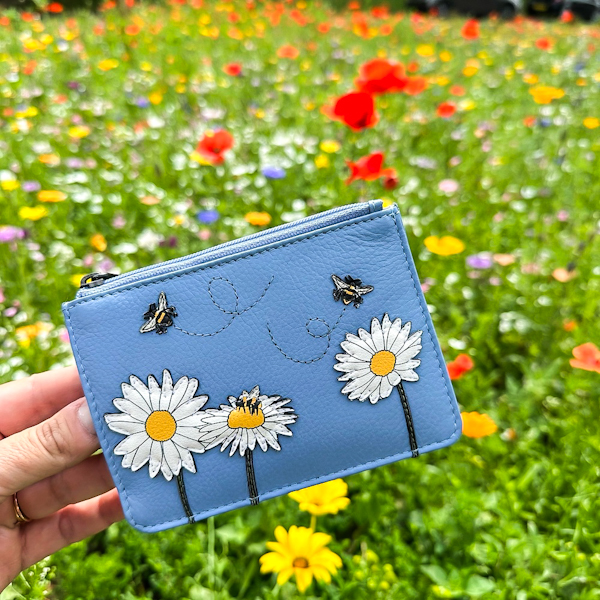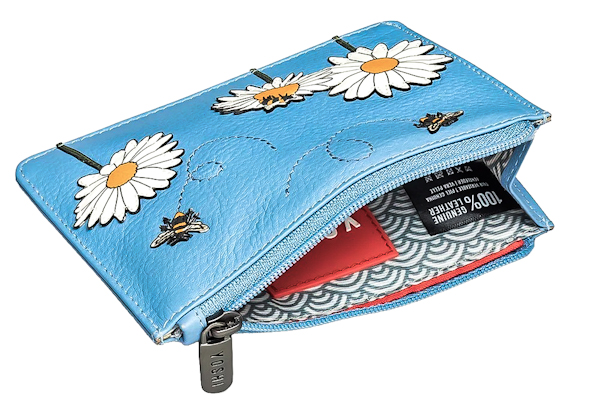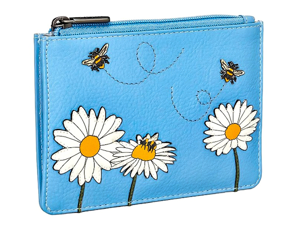 Модний дизайнерський гаманець із натуральної шкіри з квітковою аплікацією та стильною підкладкою. Компактний формат 13 х 8,5 х 1 см. Одне основне відділення для купюр та монет, й одна зовнішня кишеня для карток. Виробництво — Yoshi (Великобританія).