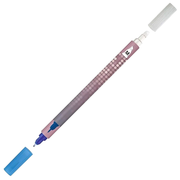 Двосторонній дизайн поєднує два інструменти в одному: коректор, який стирає написи, зроблені чорнилами пір'яних ручок, та капілярну ручку, що дозволяє писати поверх стертого.