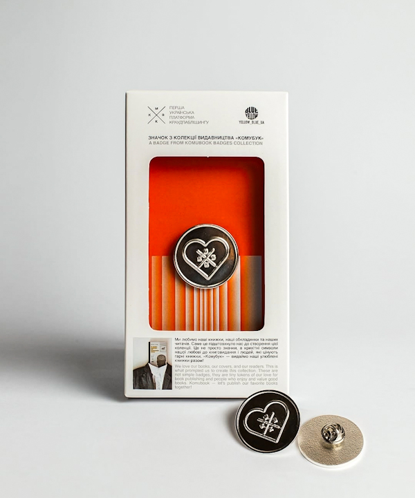 Стильний значок від українського бренду Inspired by UA був створений у колаборації із книжковим видавництвом Комубук. Натхненням стали соковиті сучасні обкладинки для добре знайомих творів. Цей пін буде чудовим подарунком для шанувальників літературного мистецтва та пам'тною винагородою за прочитану книгу.