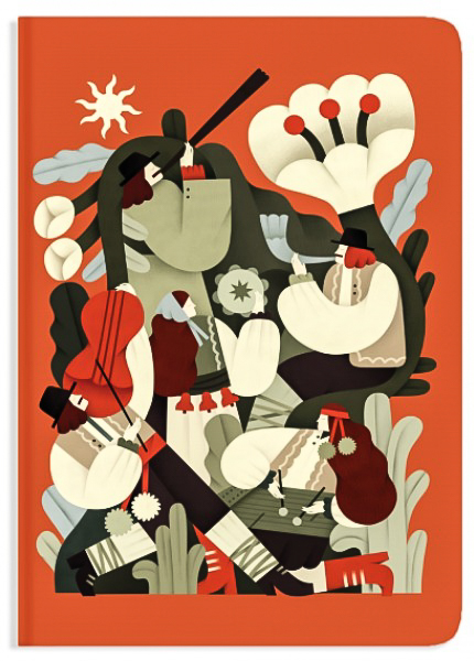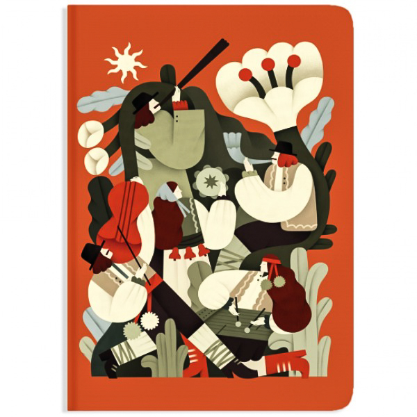 Яскравий блокнот на кожен день з традиційним зображенням гуцулів у сучасній інтерпретації на обкладинці. Всередині сторінки в клітинку. Всього 160 сторінок молочного кольору щільністю 100 г/м2. Формат — А5, 13 х 19 см. Зроблено в Україні.
