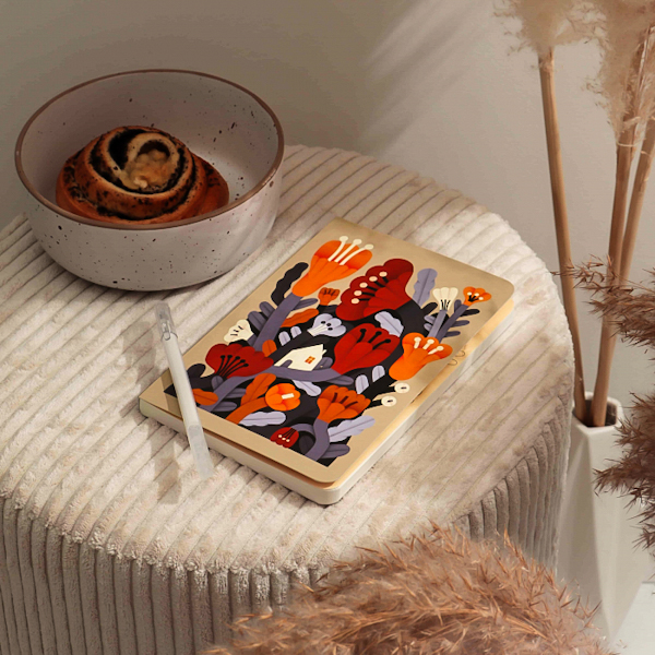 Блокнот у клітинку від українського бренду Gifty. Яскраві фарби ілюстрацій на однотонному нюдовому тлі, створені художницею Альбіною Колесніченко, надихають, живо передаючи колоритний образ теплої домівки.