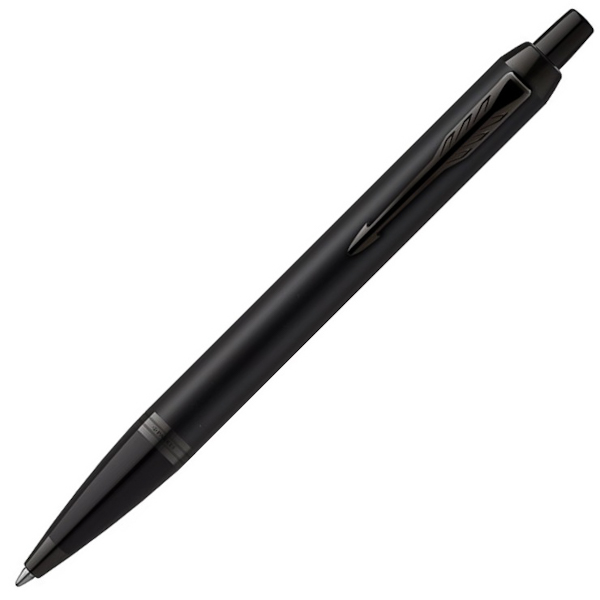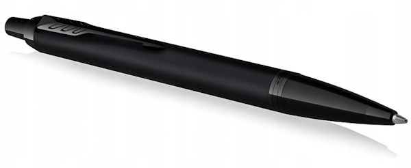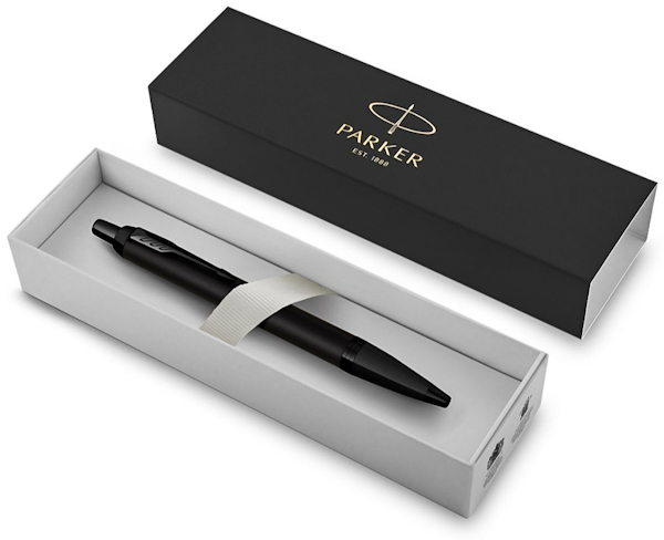 Корпус ручки Parker IM Achromatic Black виготовлений з латуні й у багато шарів вкритий чорним матовим лаком. Деталі дизайну з нержавіючої сталі з чорним PVD-покриттям. Механізм натискної дії: щоб увімкнути ручку слід натиснути на кнопку зверху. Легке безперервне письмо насиченими чорнилами.