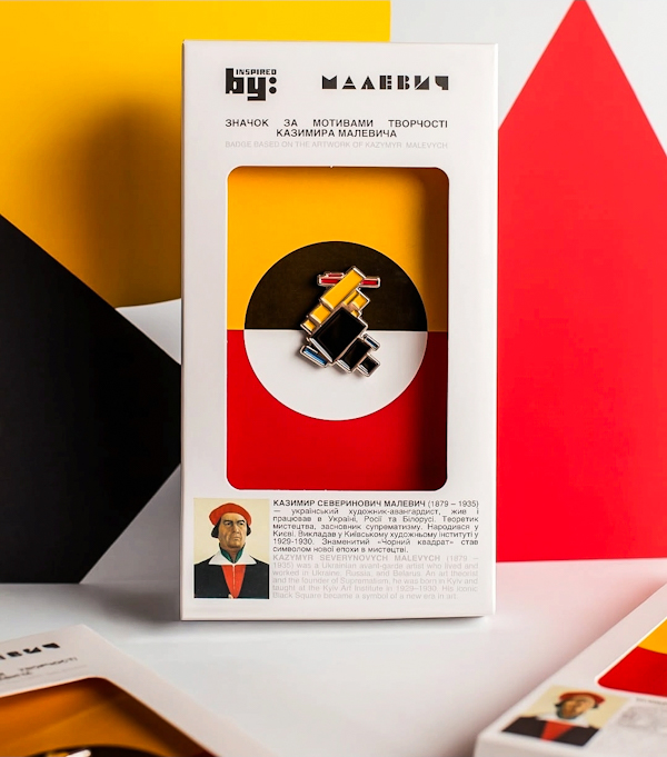 Серія патріотичних значків від українського бренду Inspired by UA створена за мотивами робіт українського художника-авангардиста Казимира Малевича. Будучи прихильником кубізму, футуризму та супрематизму, творець вміло наділяв прості геометричні форми та яскраві кольори глибоким символізмом. Пін стане зворушливою можливістю подарувати рідним чи близьким вам людям шматочок культурної спадщини України.