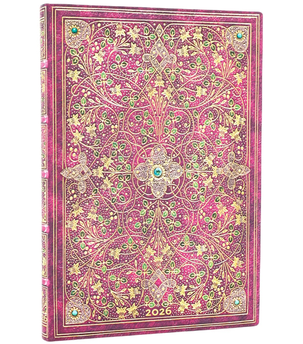 Вишукану м'яку обкладинку щотижневика Paperblanks на 2026 рік прикрашає зображення дивовижної палітурки, яку було виготовлено в англійській палітурній майстерні Френсіса Сангорскі та Джорджа Саткліффа. Вони прославилися на весь світ виробами, прикрашеними дорогоцінним камінням. Палітурка була створена 1922-го року для поеми «Recessional», написаної Редьярдом Кіплінгом до Діамантового ювілею правління королеви Вікторії, який відзначався 1867-го року. Виріб прикрашений вкрапленнями зі справжніх бірюзи, аквамаринів та рубінів.