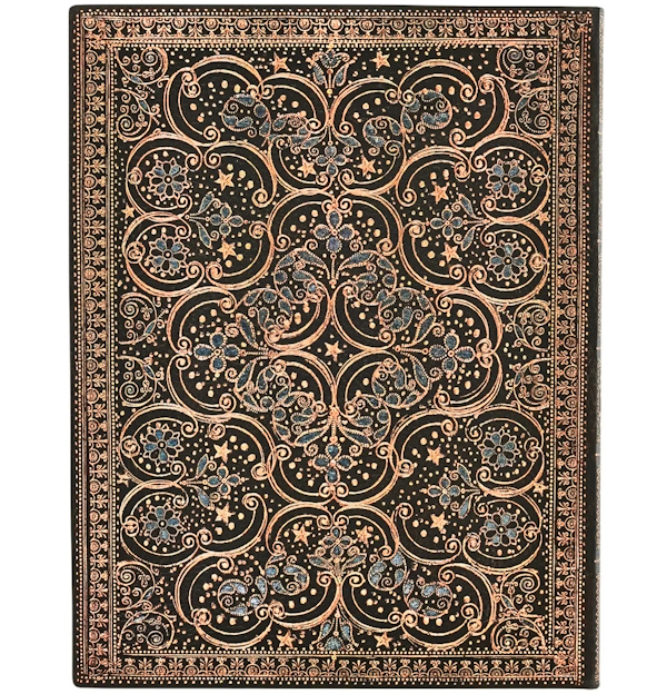 Щоденник з м'якою обкладинкою Paperblanks на 2026 рік прикрашений філігранним малюнком, який пробуджує відчуття благородства та витонченості. Виготовлена в 1675-му році в Англії королівським палітурником, ця зразкова обкладинка відрізняється вигадливим квітковим візерунком. До речі, усередину палітурки було вшито книгу Тhe Government of the Tongue, написану Річардом Аллестрі, ректором Ітонського коледжу.