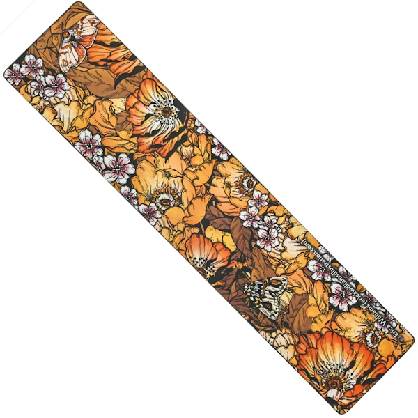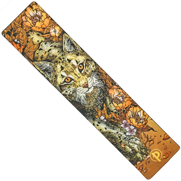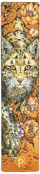 Закладка Paperblanks прикрашена яскравим та динамічним дизайном «Сходження рисі». Дика кішка з'являється з серпанку помаранчевих квітів на відтвореній живій сучасній роботі американської художниці та ілюстраторки Еріки Вільямс (також відомої як HookieDuke). Спочатку створений як трафаретний постер обмеженого тиражу для американського фолкдуету Watchhouse, цей малюнок захоплює уяву та переносить глядача у нові світи.