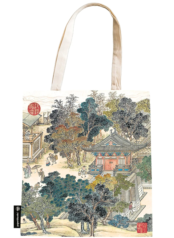 Сумку-шопер Paperblanks «Епоха в Цзіньліні» прикрашає фрагмент сувою довжиною понад 10 метрів, що зображує міський пейзаж, суспільне життя та звичаї Нанкіна в Китаї часів династії Сун. Є кишеня на блискавці для дрібниць. Формат: 38 х 38 х 9 см. Виробник: Paperblanks (Канада).