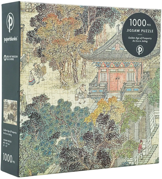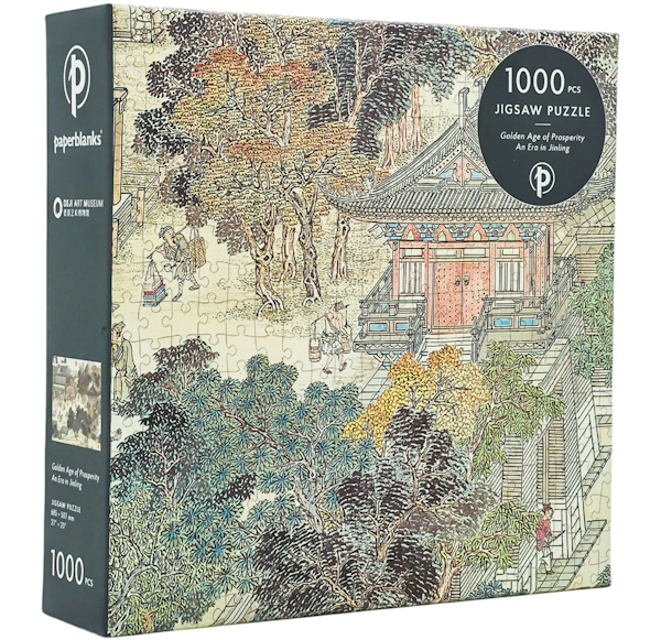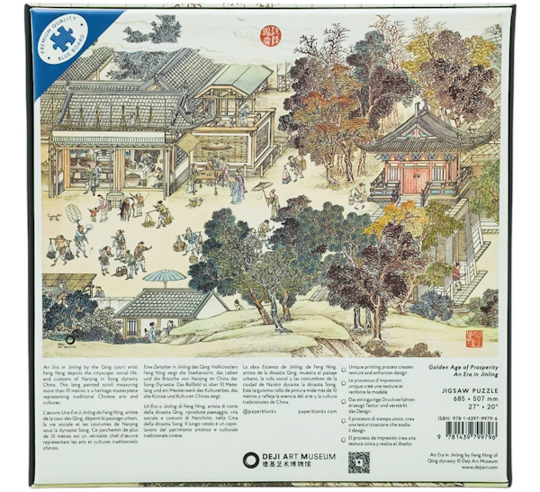 Пазл Paperblanks «Епоха в Цзіньліні» прикрашає фрагмент сувою довжиною понад 10 метрів, що зображує міський пейзаж, суспільне життя та звичаї Нанкіна в Китаї часів династії Сун. Виготовлений з щільного картону. Складається з 1000 штук. Формат: 50,7 х 68,5 см. Виробник: Paperblanks (Канада).