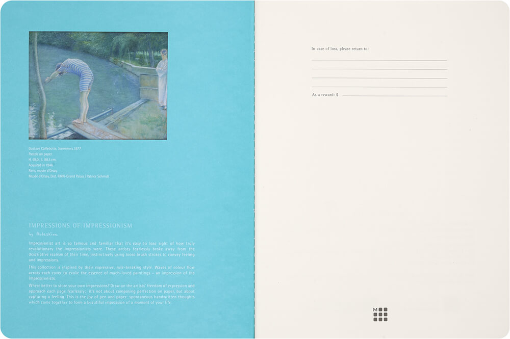 Колекція Moleskine Impressionism передає вільний дух художників-імпресіоністів та їхню сміливість порушувати межі та відмовлятися від точності на користь емоцій, експресивного мазка й миттєвих вражень.