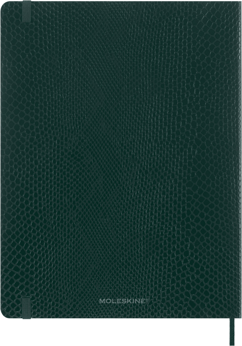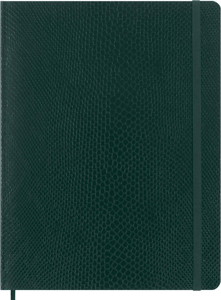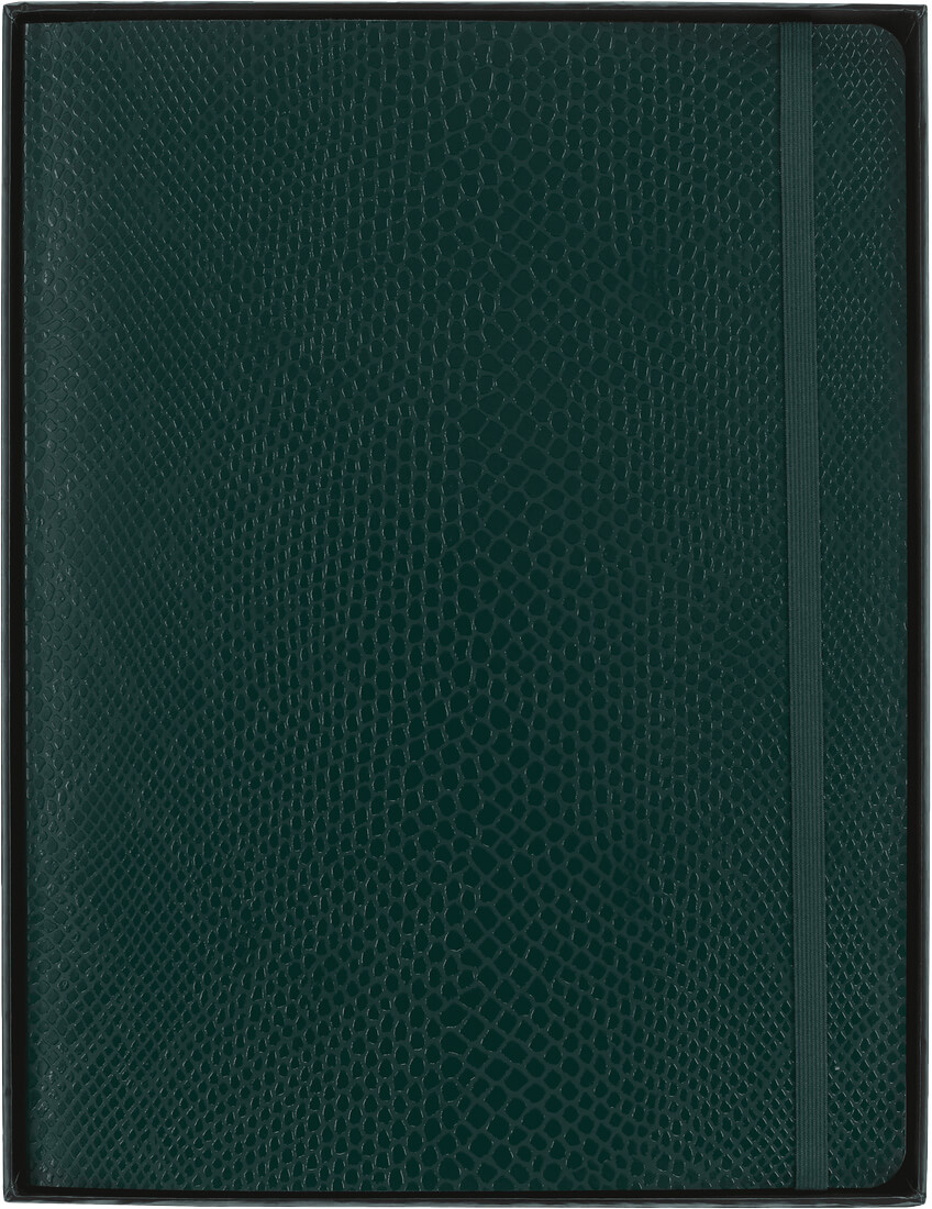Тактильна веганська обкладинка цього блокнота створена компанією VEGEA®, яка перетворює органічні відходи італійської виноробної промисловості на нові матеріали. Від виноградника до блокнота: обкладинка з ефектом пітона додає нотку природної дикості вашим записам, а водночас підтримує сталий розвиток і етичне виробництво, демонструючи, що стиль може бути гармонійним із турботою про природу та суспільство.