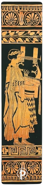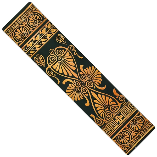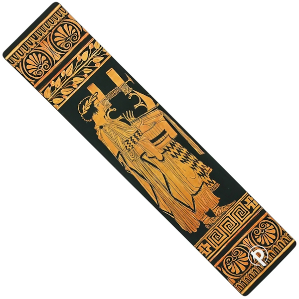 Закладка Paperblanks «Стародавня грецька кераміка» прикрашена репродукцією посудини, виготовленої в грецькій колонії в регіоні Луканія на півдні Італії між 415 і 400 роками до н. е. Передню частину прикрашає бог Аполлон. Давньогрецька кераміка відкриває захопливе вікно у минуле загубленої культури. Ці глиняні полотна мають величезне значення не тільки завдяки своїй вишуканій красі, але й завдяки неймовірній візуальній розповіді.