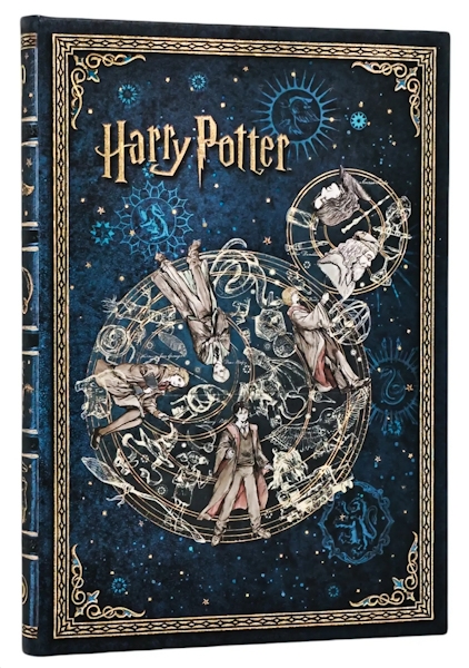 Обкладинка блокнота Paperblanks з колекції «Гаррі Поттер» переносить нас до школи магії та чаклунства Гоґвортс. Вона більше, ніж просто місце навчання. Тут переплітаються дружба, доля та боротьба темряви й світла. Це особливе місце наповнене магією, що продовжує надихати та живе у кожному з нас. Містичний синьо-золотий дизайн, що втілює важливі моменти шкільного життя, зображує улюблені персонажі та знакові мотиви, ідеально передаючи атмосферу світу Гаррі Поттера.