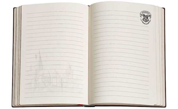 Для створення блокнотів Paperblanks використовується спеціально розроблений високоякісний папір. Він швидко вбирає і не просвічує чорнила. Ідеальний варіант для письма чорнильною, ролерною або кульковою ручкою. Додатково сторінки прикрашають зображення замку та герб Гоґвортсу.