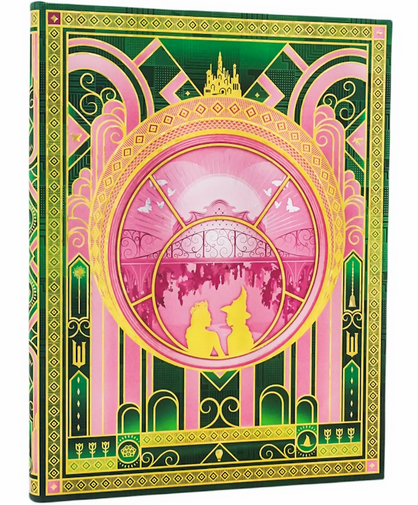Обкладинка блокнота Paperblanks присвячена піднятим у фільмі філософським питанням на споконвічні теми та незабутнім персонажам, які роблять «Wicked» культурним феноменом. Це унікальне видання віддає шану незвичайній дружбі між Ельфабою та Гліндою та їх пригодам, що досліджують індивідуальність, владу та складності протистояння добра й зла.