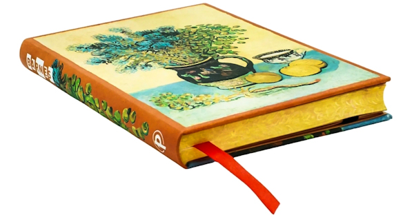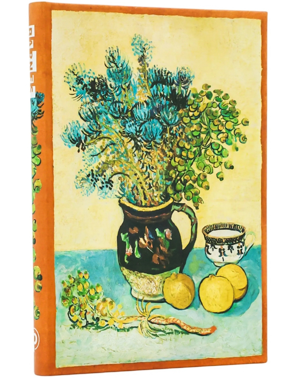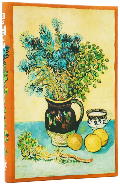 Блокнот Paperblanks «Натюрморт Ван Гога» присвячений чудовому генію нідерландсього художника постімпресіоніста. Його можна використовувати як діловий планувальник, або ж як творчий записник. Якісний папір. Формат: 9 х 14 см, 176 нелінованих сторінок зі щільністю паперу 85 г/м2. Закривається чорною гумкою, є закладка-лясе, кишенька для корисних дрібниць. Виробник: Paperblanks (Канада).