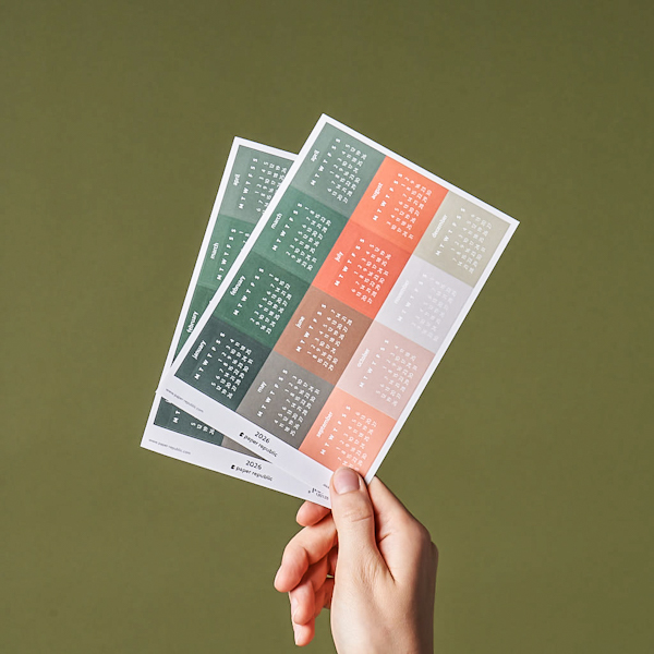 Наліпки з календарем на 2026 рік у 12 різноколірних рішеннях швидко та барвисто перетворять будь-який блокнот в планувальник. Розмір: 13 x 19 см. Виробник: Paper Republic (Австрія).