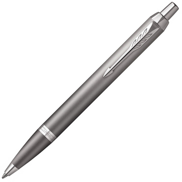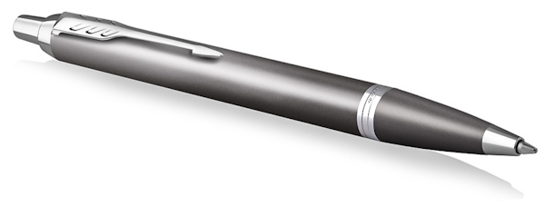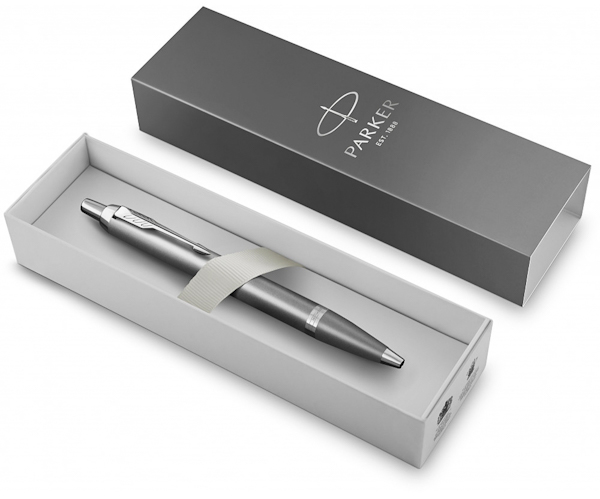 Оновлений дизайн зі стильним поєднанням кольорів. Parker IM — оптимальний вибір для прихильників брендової канцелярії та письма. Корпус із латуні вкритий сірим лаком. Деталі дизайну з хромованої нержавіючої сталі. Всередині кульковий стрижень з синіми чорнилами. Упакована у фірмову картонну коробочку та пакет.
