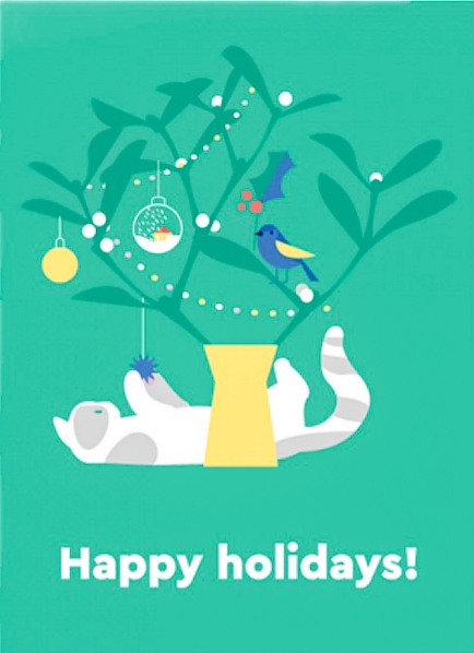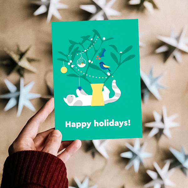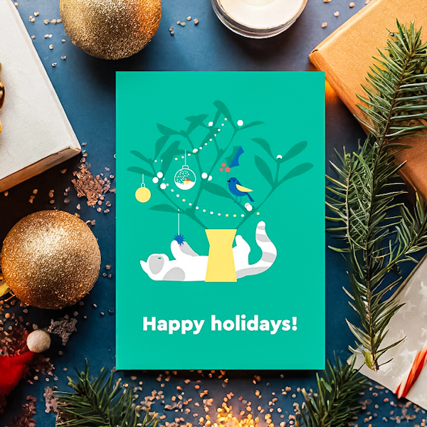 Новорічна листівка від українського бренду Gifty з милою ілюстрацією пухнастого помічника. Цим автори хотіли нагадати, що не все має бути ідеально, головне — щоб було весело. Теплий та багатослівний подарунок для дорогих вам людей.