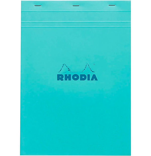 Яскравий блокнот Rhodia Pad №19 для швидких повсякденних записів і замальовок. Відривні аркуші з мікроперфорацією, з'єднані за допомогою скріпок. Обкладинка зі щільного паперу, спеціальні видавлені лінії вигину обкладинки, ззаду картонна підкладка. 21 х 31,8 см. 160 сторінок (80 аркушів), білий папір щільністю 80 г/м2. Виробництво: Rhodia, Франція.
