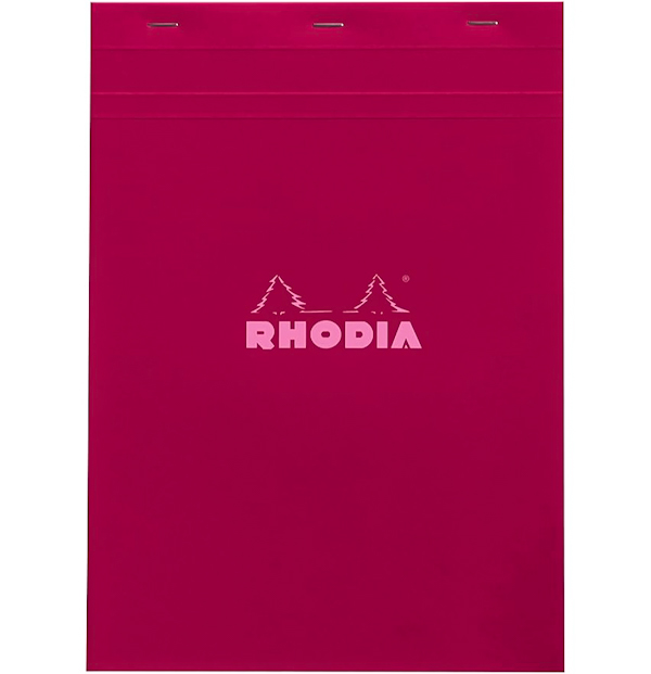 Яскравий блокнот Rhodia Pad №19 для швидких повсякденних записів і замальовок. Відривні аркуші з мікроперфорацією, з'єднані за допомогою скріпок. Обкладинка зі щільного паперу, спеціальні видавлені лінії вигину обкладинки, ззаду картонна підкладка. 21 х 31,8 см. 160 сторінок (80 аркушів), білий папір щільністю 80 г/м2. Виробництво: Rhodia, Франція.