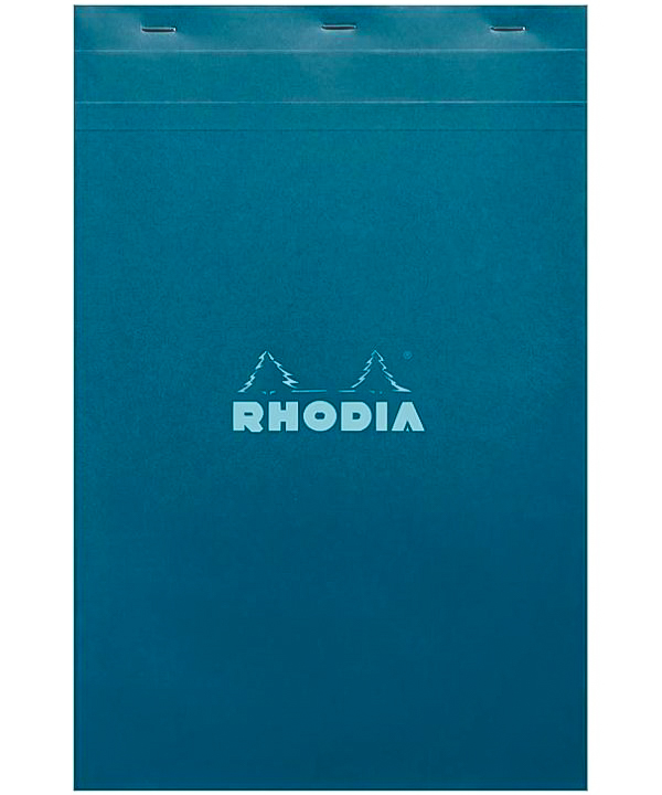 Яскравий блокнот Rhodia Pad №19 для швидких повсякденних записів і замальовок. Відривні аркуші з мікроперфорацією, з'єднані за допомогою скріпок. Обкладинка зі щільного паперу, спеціальні видавлені лінії вигину обкладинки, ззаду картонна підкладка. 21 х 31,8 см. 160 сторінок (80 аркушів), білий папір щільністю 80 г/м2. Виробництво: Rhodia, Франція.