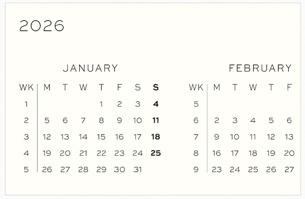 — «день на сторінці» має розмітку в крапку та доповнений мінікалендарями найближчих місяців. Є нумерація тижній та місце для нотаток