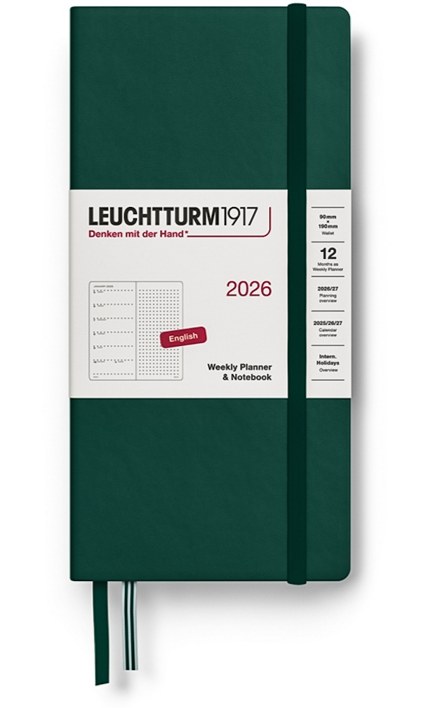 Щотижневик Leuchtturm1917 Wallet на 2026 рік із замітками в крапку (B6+, лісовий зелений)
