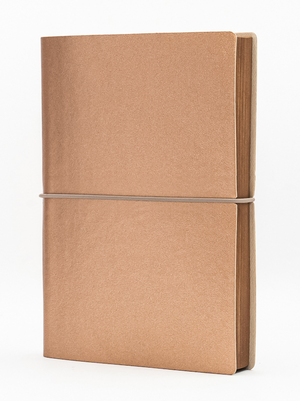 М'яка обкладинка щоденника надійно захищає його від вологи і пошкоджень і забезпечує його гнучкість і зручність у використанні. Блокнот закривається за допомогою круглої фірмової фіксуючої резинки. Для її розміщення на обкладинці передбачений спеціальний виріз, що надає записнику елегантний і нестандартний вигляд. Зріз щоденника прикрашає фольгування у колір обкладинки.