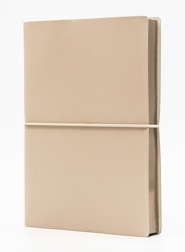 М'яка обкладинка щоденника надійно захищає його від вологи і пошкоджень і забезпечує його гнучкість і зручність у використанні. Блокнот закривається за допомогою круглої фірмової фіксуючої резинки. Для її розміщення на обкладинці передбачений спеціальний виріз, що надає записнику елегантний і нестандартний вигляд. Зріз щоденника прикрашає фольгування у колір обкладинки.